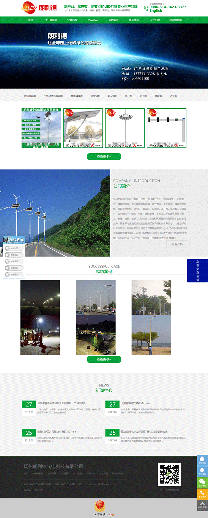 江苏朗利德光电有限公司是一家LED户外灯、太阳能路灯、光伏组件、储能锂电池、太阳能路灯控制器、监控系统、安防系统、离网发电系统、并网发电系统、信号灯、景观灯、庭院灯、高杆灯、路灯杆、交通器材、LED室内灯、电线、电缆、通信器材(不含国家行政许可项目)研发、制造、销售、安装,LED封装,自营和代理各类商品及技术的进出口业务(国家限定企业经营或禁止进出口的商品和技术除外)。