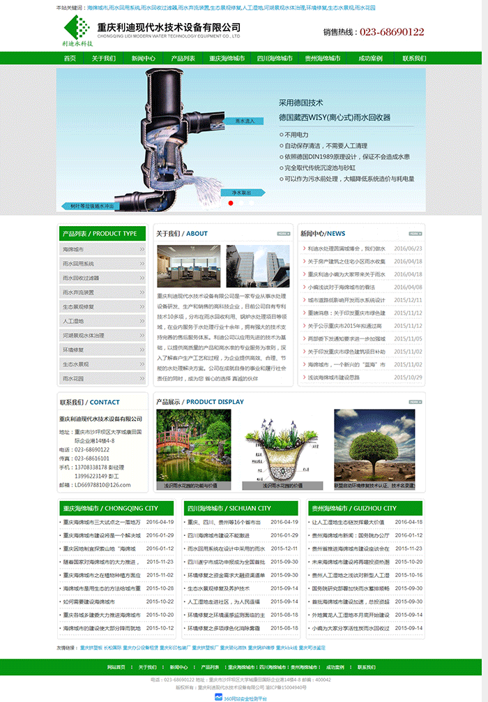 重庆利迪现代水技术设备有限公司自2009年成立以来,一直致力于各种环保水处理节能设备的研发、设计,近年来更是在雨水收集、净化、回收利用领域具备了领先的产品和技术优势,我们设计、安装了各种自流型雨水弃流过滤装置、雨水自动过滤器、雨水控制器、可清洗雨水蓄水模块等。专业从事各种雨水收集处理系统的设计、安装,我公司设计、安装我多个雨水收集处理系统均通过绿色建筑评审、生态小区评审。